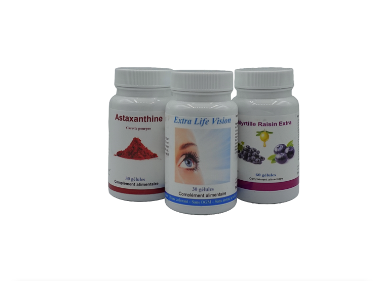 Lot 1 Extra Life Vision, 1 Myrtille Raisin Extra, 1 Astaxanthine