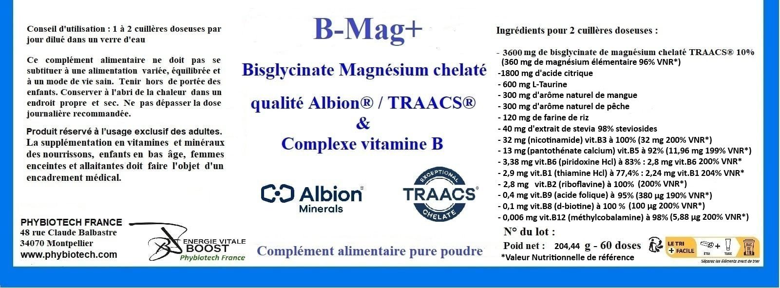 -3600 mg de bisglycinate de magnésium chélaté ALBION MINERALS®/TRAACS® 10% soit 360 mg de magnésium élementaire