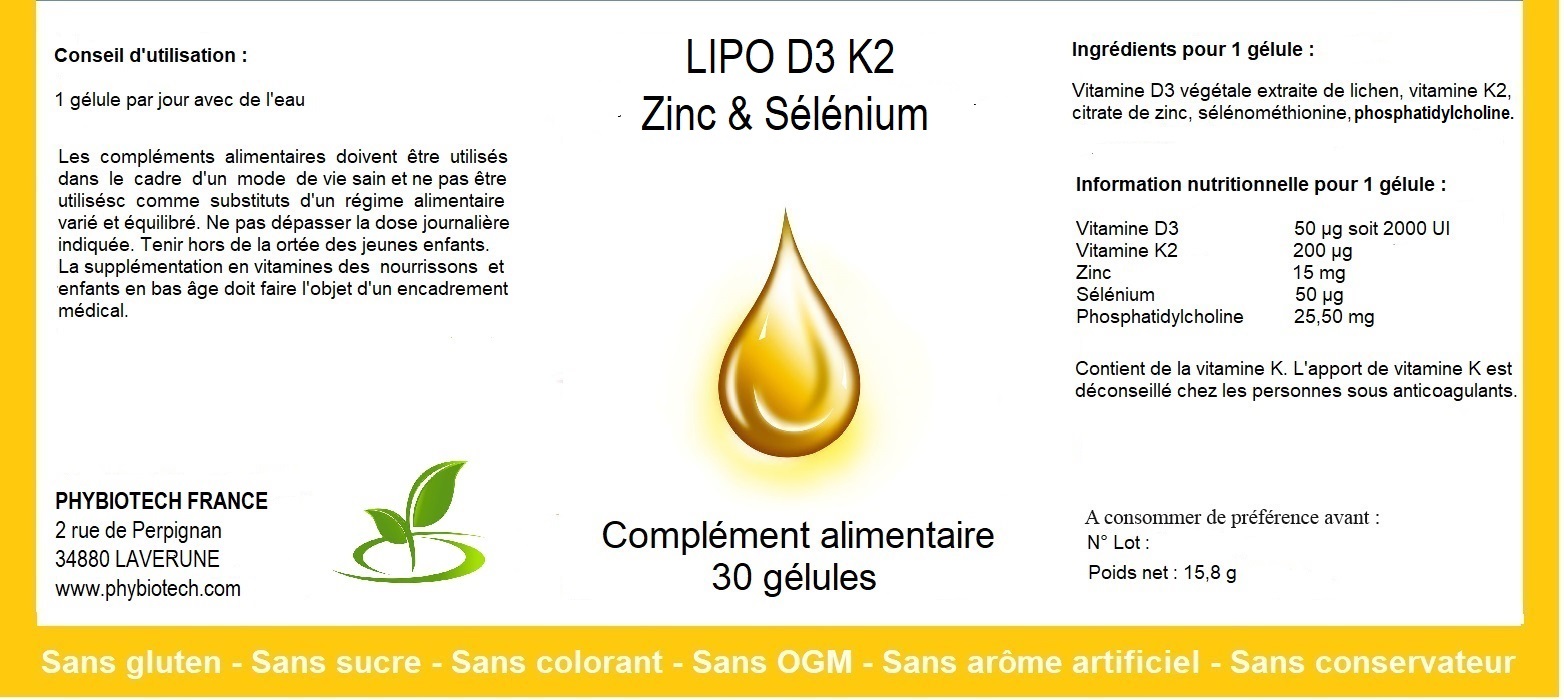 Lot 4 LIPO D3 K2 Zinc & Sélénium