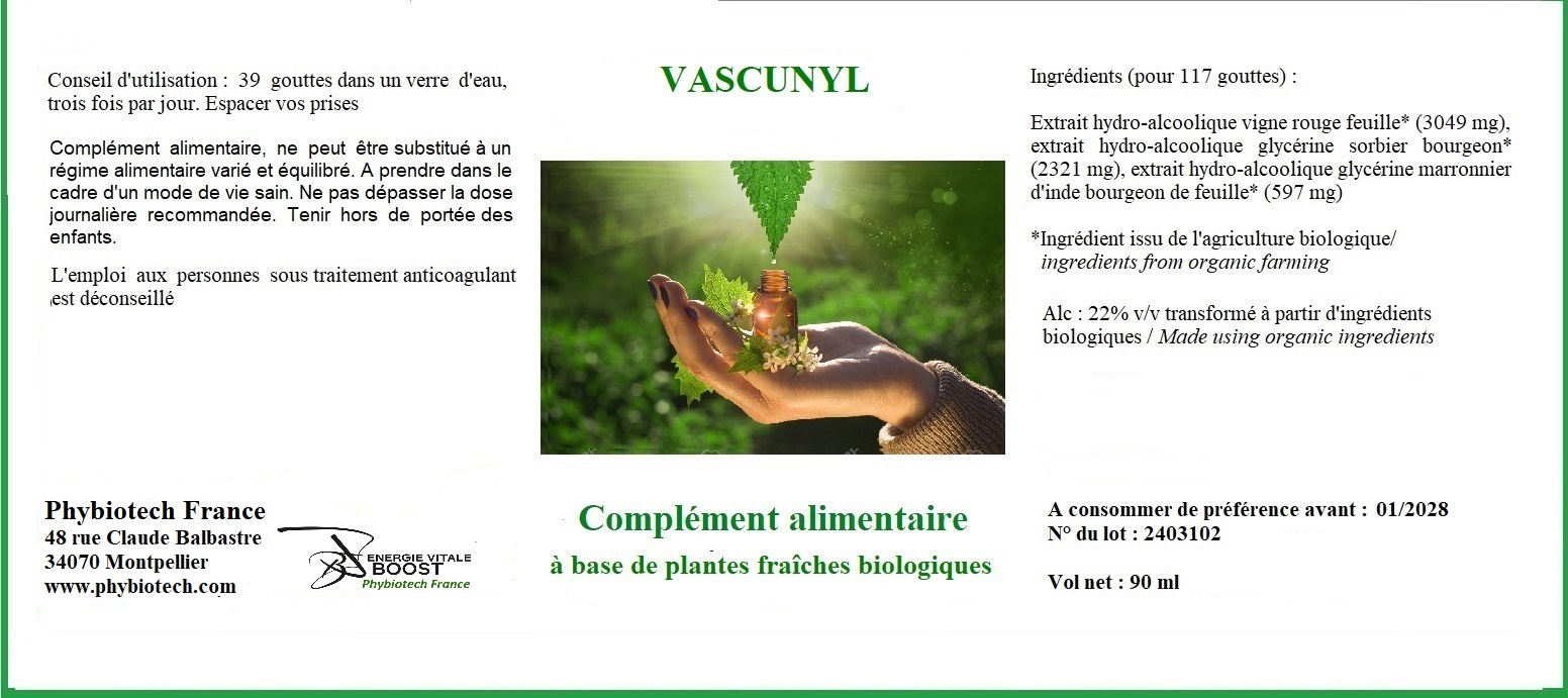 La formulation des 3 plantes ici préparées sont la vigne rouge feuille, le sorbier bourgeon et le marronnier d’inde bourgeon de feuille, qui sont connus pour les bienfaits sur la circulation sanguine.